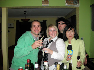 Mabe and Bill had an Election Night party and we ate some traditional Alaskan fare: moose steaks, salmon and Alaska Amber. Bill shot the 1400 pound moose himself! Unfortunately, my camera battery died so I don't have too many pictures. We ended up celebrating (drinking, laughing, playing Wii) until 5 am. Go Obama!